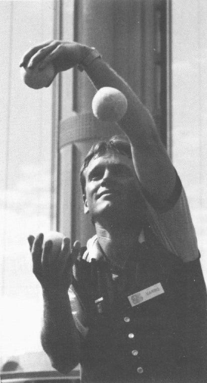 At one time during the summer juggling was so prevalent that when a new guy strolled into the dressing room I'd ask, "And what kind of juggling act are you?"