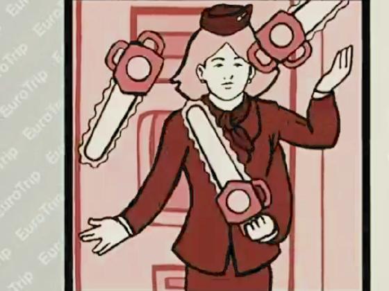At 02:01, during the opening titles, there is an animation of an airline flight attendant juggling 3 chainsaws for 6 seconds.