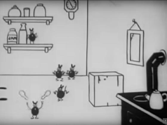 This is the first appearance of Felix the Cat, though he has not yet been given that name, and is here called Master Tom. To female cats, Master Tom is a heart-breaker; and to mice he's a head-breaker. But when Tom falls in love with Miss Kitty White, all that changes. Now, all the time he would have spent terrorizing the mouse population is instead spent primping in front of the mirror. Tom and Kitty first make love, and a great deal of noise, on a back-alley fence. Someone ends their tryst by throwing a boot. Later, they meet up by an ash can. Tom plays his banjo and Miss Kitty dances. Later, cartoon magic allows them to pluck notes from the air and turn them into go-carts. It's all fun and frolics until the mice destroy the house that an oblivious Tom is supposed to be guarding, and the lady of the house throws him out by the tail. And then poor Tom gets a worse surprise.