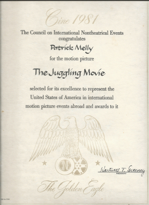 The Pickle Family Jugglers share the essentials of juggling, including: Three Elements That Separate Juggling From Playing Catch, Throwing To The Imaginary Spot, and Keeping It Away From The Monkey In The Middle. An old-school optical printer (no digital effects!) reveals the mystery and danger of the Back-To-Back Triangle performed at the Pickle Family Circus.
