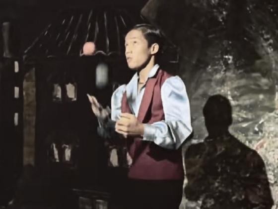 At 55:39, Patrick Loyola juggles 3 balls on a stage, seen for 5 seconds, as part of a variety show.