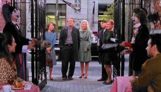 At 1:12:41, 2 street performers pass 3 clubs and 3 machetes for 25 seconds, with Nick Nolte and Sheryl Lee in the background, as the camera zooms in on Sheryl Lee.
