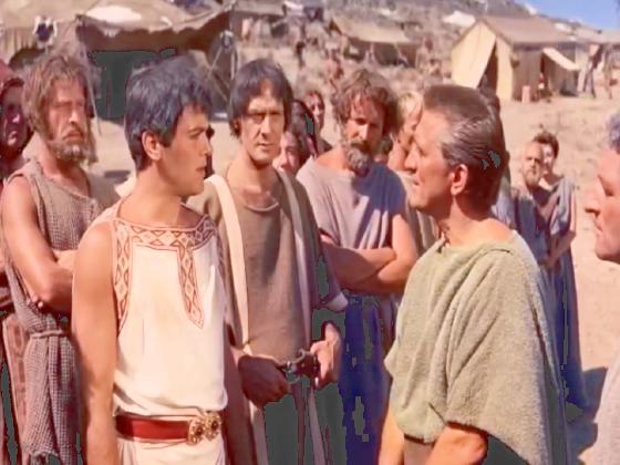 At 1:23:14, Spartacus (Kirk Douglas) meets Antoninus (Tony Curtis) and had this exchange: