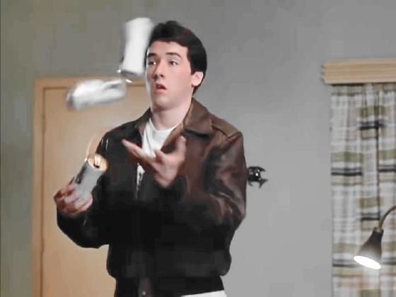 At 53:37, John Cusack makes an attempt to juggle 3 empty beer cans in a motel room. He was unsuccessful, perhaps because he was supposed to be drunk.