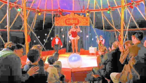 At 1:30:57, and for the next 40 seconds, Pablo Picasso and Françoise Gilot are at a circus and see a woman juggling 4 rings for 5 seconds while standing on a rolling globe, soon followed by a second woman juggling 3 torches for 2 seconds. The second woman then juggles 3 rings for 5 seconds. These two women are Debbie Cusmans and Beth Lawson.